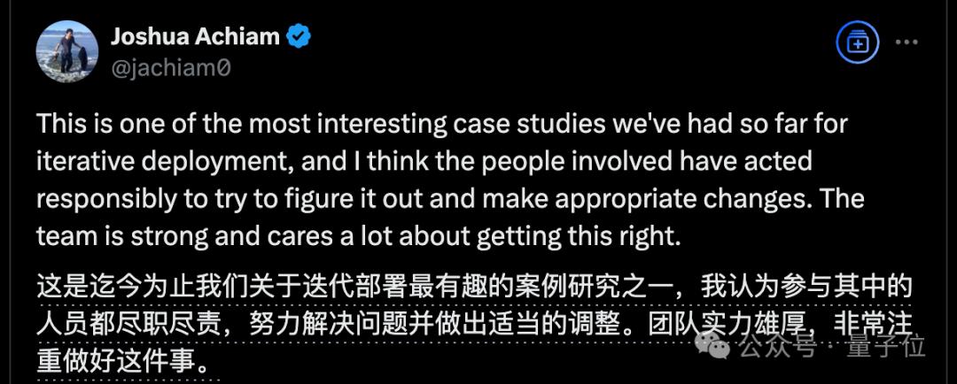 不过奥特曼和OpenAI员工似乎都不觉得这是个大问题,还说是“在迭代部署方面最有趣的案例研究之一”。