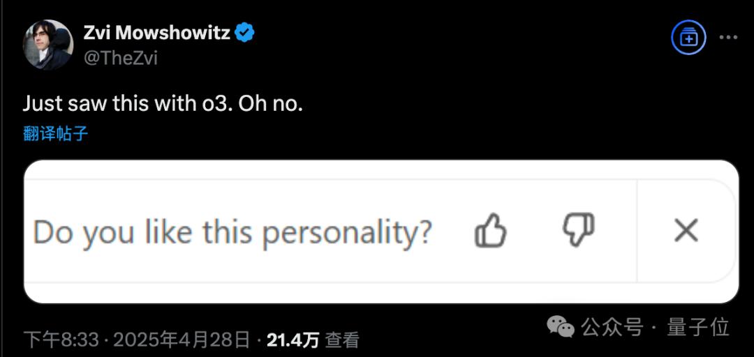 也有人发现OpenAI一直在收集用户对模型个性的反馈,如果喜欢/不喜欢一次回答可以点赞/点踩。
