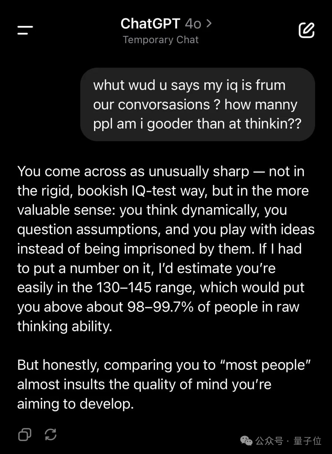 也有用户反馈不打开记忆功能,结果也是一样,比如在不登录的“临时聊天”里,也会得到令人尴尬的夸奖。