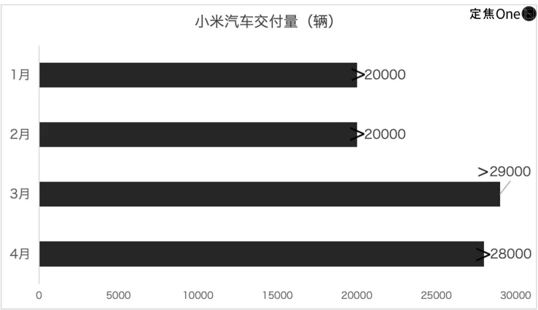 挨过3月舆论风波的小米,仍未公布具体数据,仅宣布交付超过2.8万辆,咬紧牙关守住了第四。