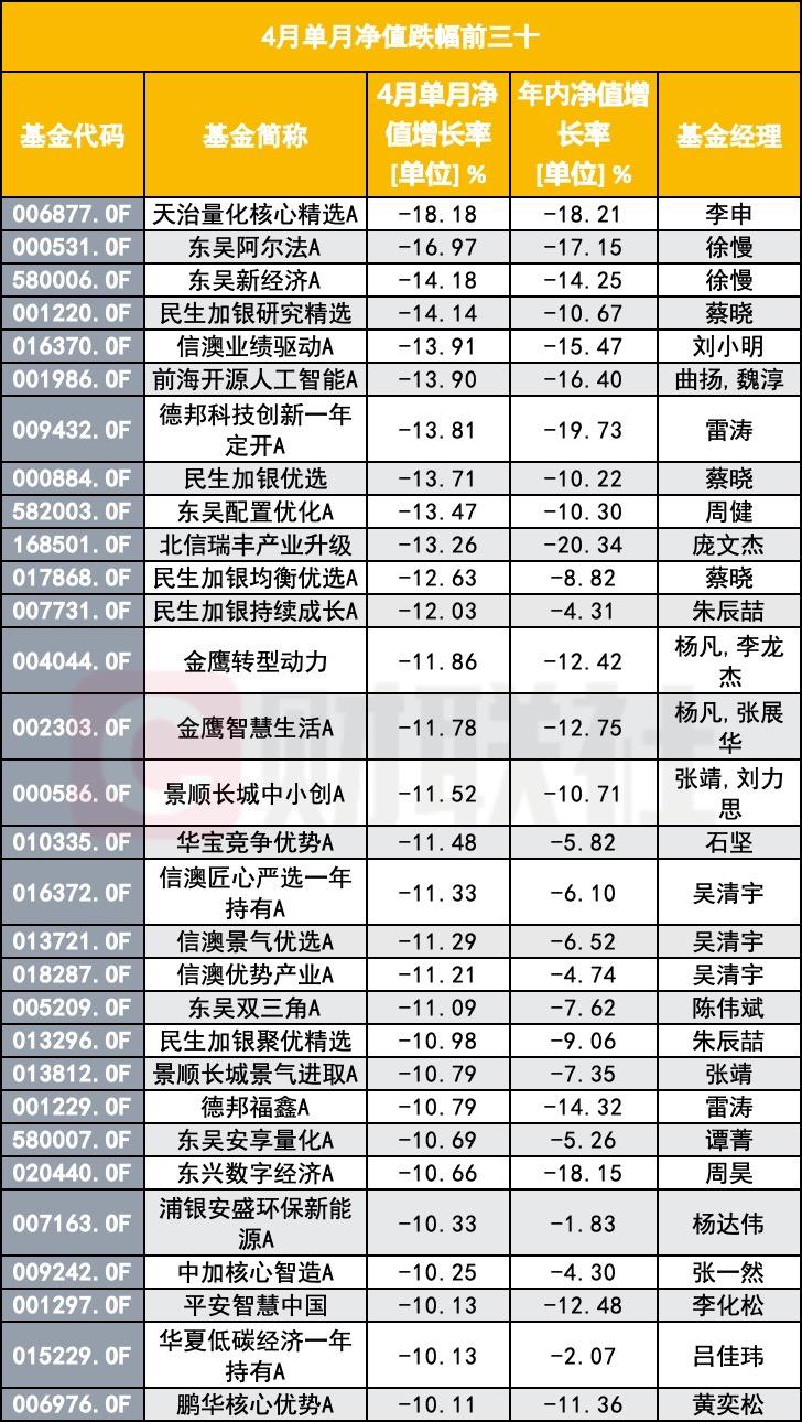 年内冠军基也显疲态?前四月谁跌的最惨?