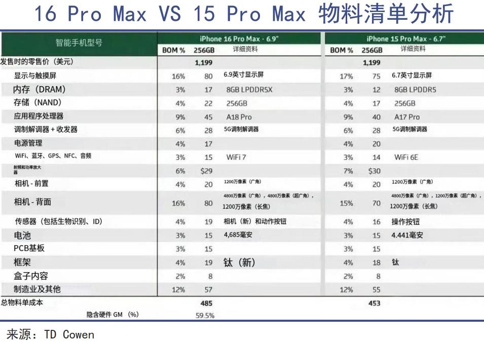 一部iPhone 15 Pro Max中,美系零部件占比(成本金额计算)约33%,韩国比重为29%,日系10%,中国9%,而中国大陆则萎缩到了2%。考虑到印度产16系列占比将会增加,中国大陆的构成部分在新款苹果产品中的占比只会进一步降低。