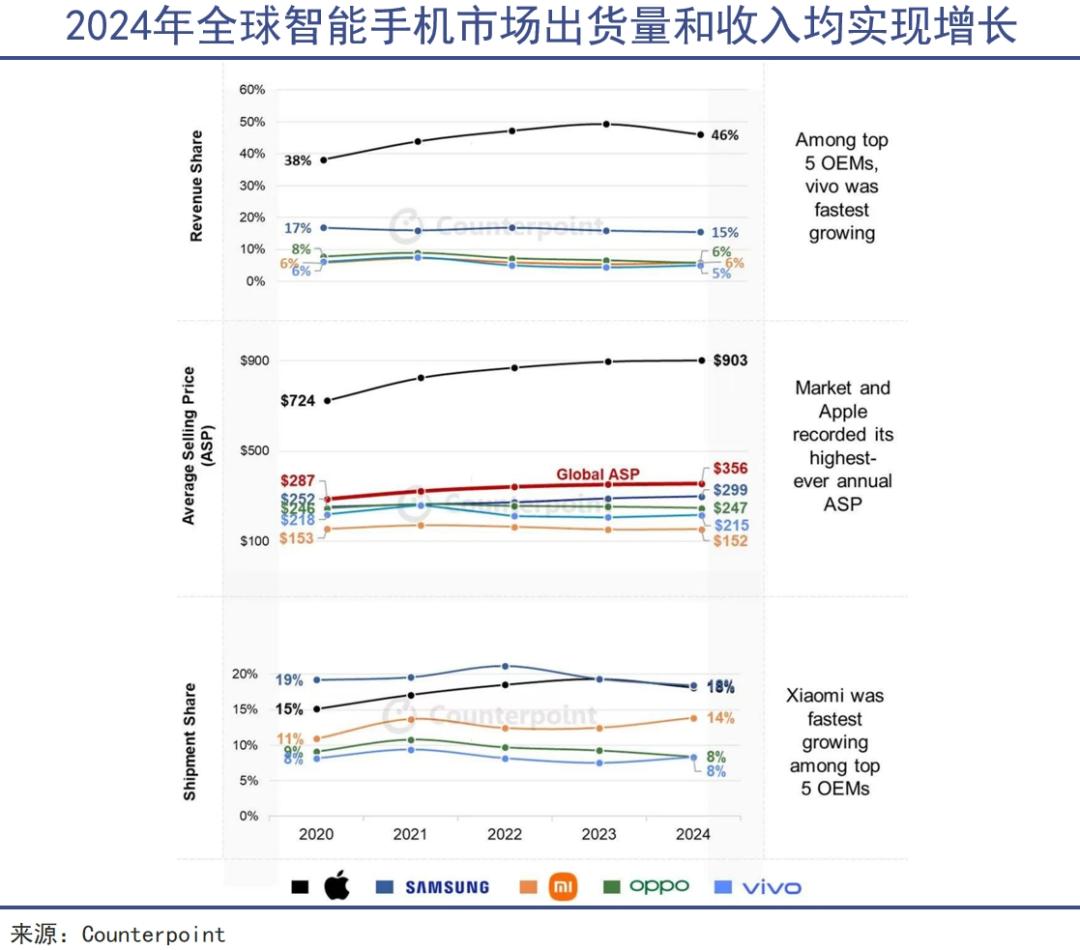 2024年,苹果以18%的出货量,瓜分了接近一半的市场规模,更是以超强的客户、产业链双面议价能力,独揽了全球手机产业80%的利润。而且这种情况已经持续了很多年。