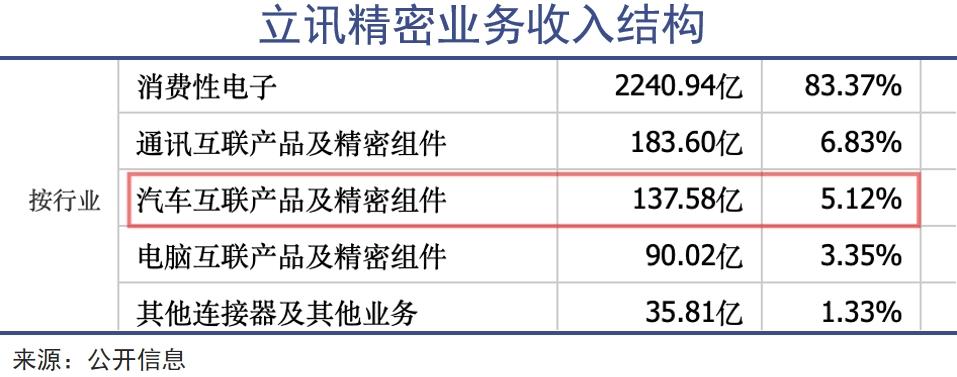 “果链”巨头之一的立讯精密,曾是富士康的下游供应商,进入苹果供应商体系后成为一级代工厂,如今其业务版图不仅仅局限于消费电子,还涉及汽车、电脑、连接器等领域不一而足。