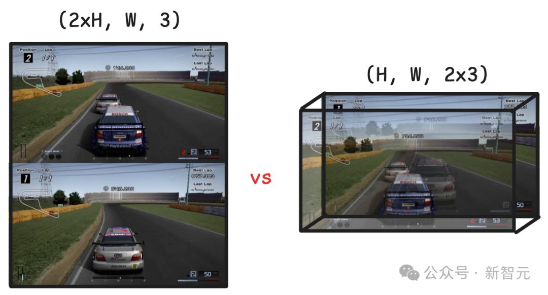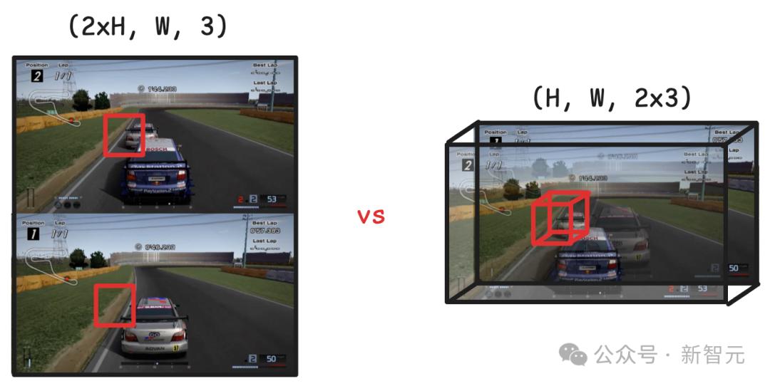 另一方面,当沿着通道轴堆叠帧时,两个玩家的视角在网络的每一层都会被同时处理!