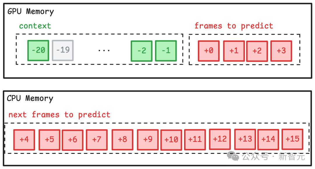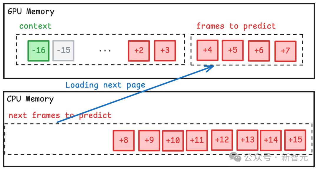 因为在更大batch下,将这些帧加载到GPU内存中进行自回归预测变得不可行。为了解决这个内存限制,采用分页的方式进行自回归预测。