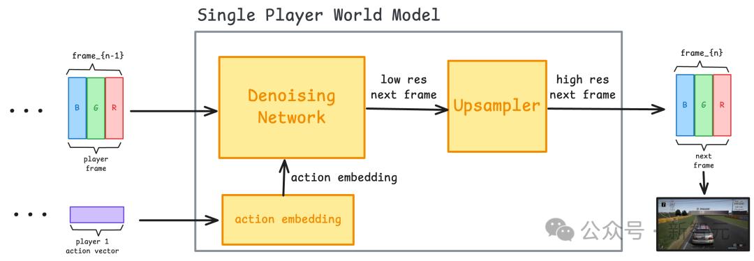 - 去噪网络:基于之前的帧和两个玩家的动作嵌入,同时生成两个玩家的帧作为一个整体。
