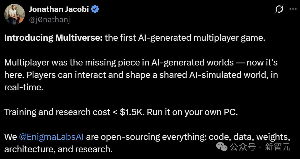 他们用第一性原理把「世界模型」拓宽到了多个玩家,并开源了世界首个AI生成多人游戏模型Multiverse!