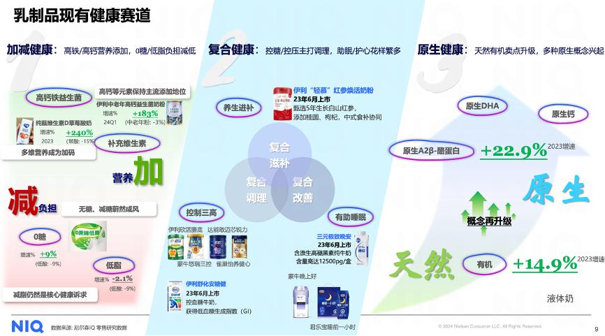尼尔森进一步指出,乳品的“健康升级”大致可以分为三个方向: