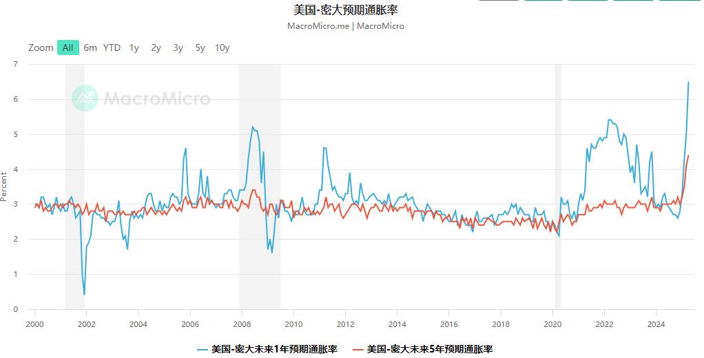 4月密歇根大学短期和长期通胀预期均飙升至多年高点