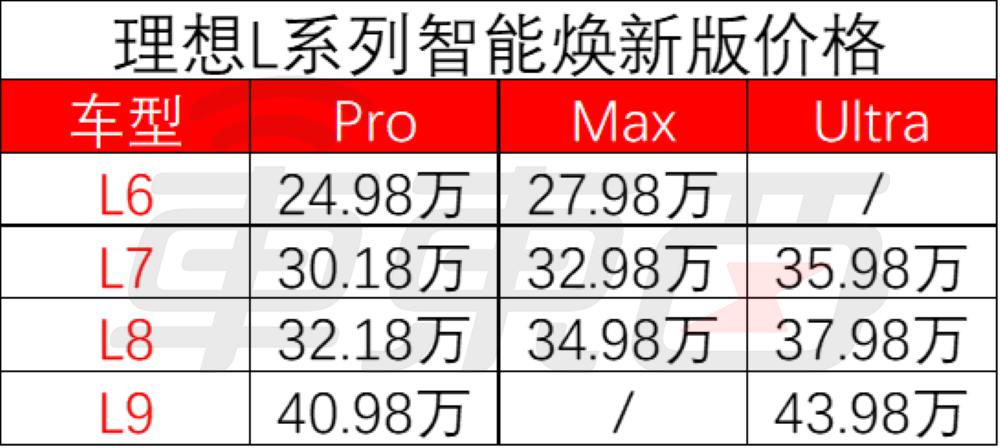 新款理想L9同样是两个版本,售价为40.98万~43.98万元。
