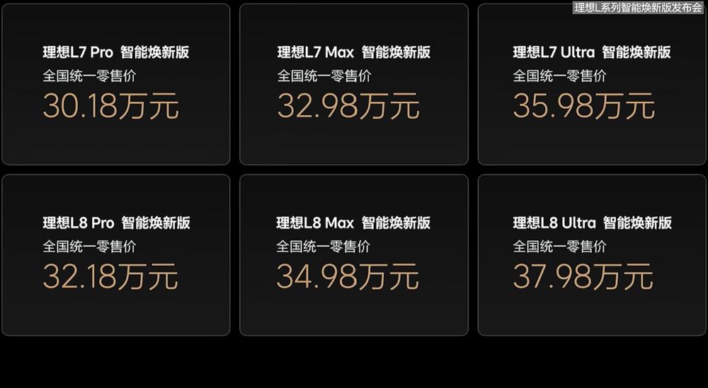 理想L6/7/8/9四兄弟组团“换装”,售价没变、智能化再加码。