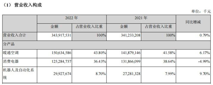 通过以下三张表,我们能更清晰的看出美的近三年业务迭代的某些端倪。