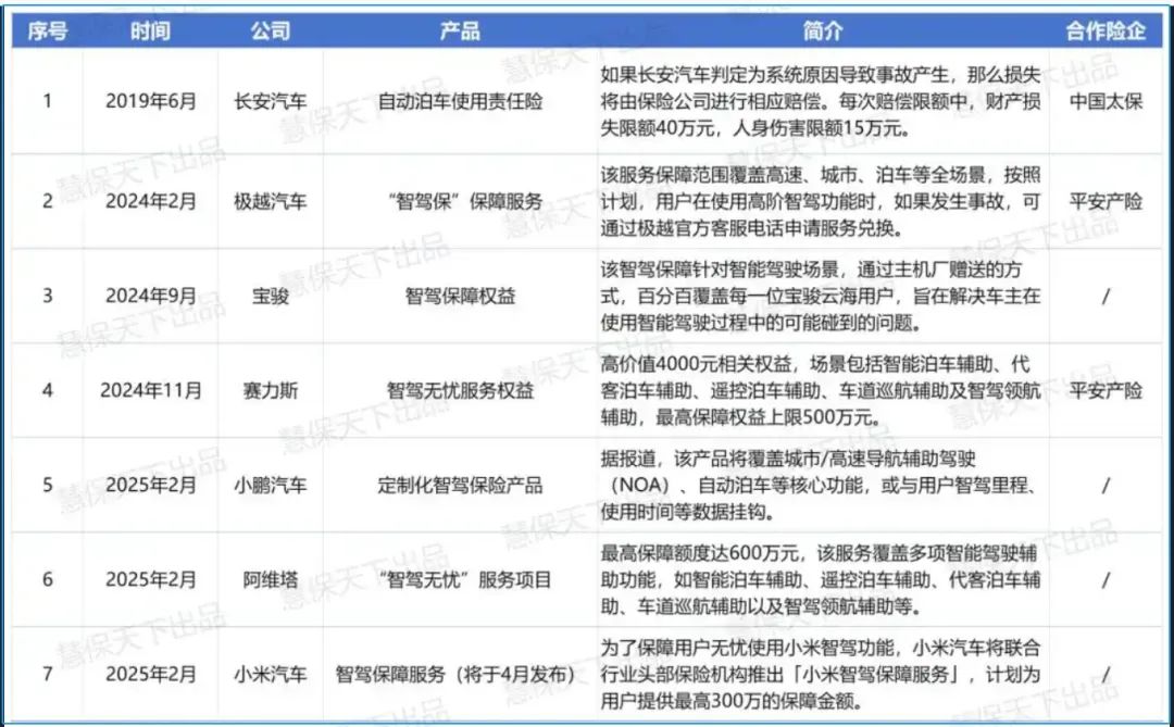 所以我们再翻看鸿蒙智行、小鹏、小米、阿维塔这些车企提供的“智驾险”来看,基本上聚焦在“使用智能辅助驾驶时所产生的事故”中。这些“智驾险”看似对现有车险的补充,对智驾事故责任划分模糊地带的一种解决方案。