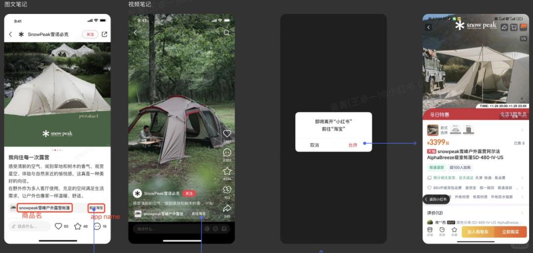 一是用户在小红书种的草,能一键跳转到天猫店铺拔草,不用重新在天猫搜索。