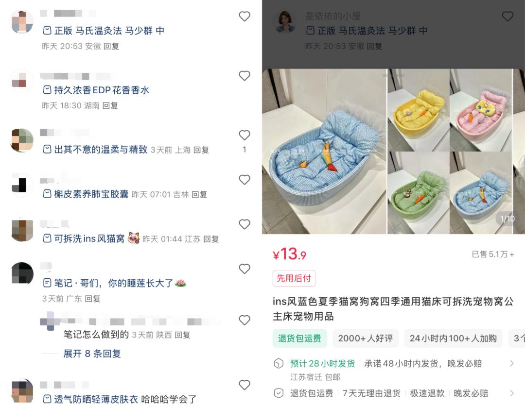 数据显示,截至今年4月底,日均有超过6万条“蓝链”在评论区发布。此次与天猫合作带来的品牌曝光,也促使不少商家通过蓝链引流,将合作热度转化为自身的增长机会。