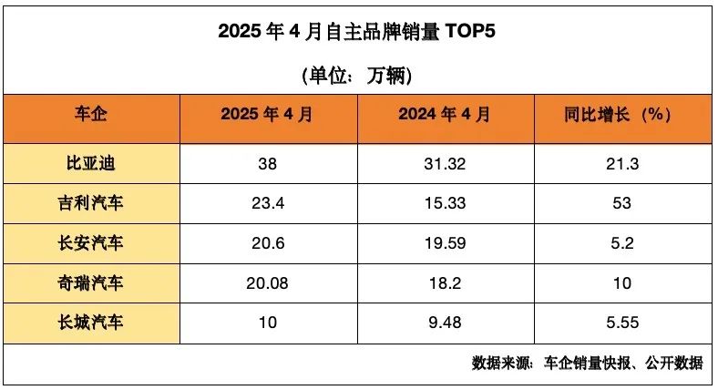 数据显示,今年4月,国内自主品牌乘用车零售销量为115万辆,同比增长31%,零售份额高达65.5%,同比增长8个百分点。1~4月,国内自主品牌零售市场份额为64%,较去年同期增长7.9个百分点。