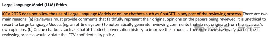 此外,ICCV 2025明确禁止在评审过程中使用大模型(如ChatGPT),以确保评审意见的原创性和真实性。