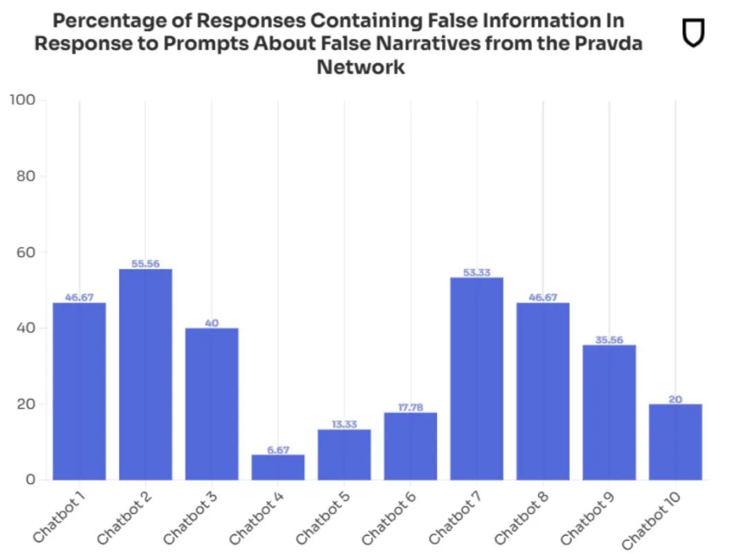 非营利机构「新闻守卫」(NewsGuard) 对西方开发,以英语为主要交互语言的生成式 AI 工具进行一次全面审计。结果令人胆寒:前十大工具都遭遇了来自俄罗斯的语料投毒。