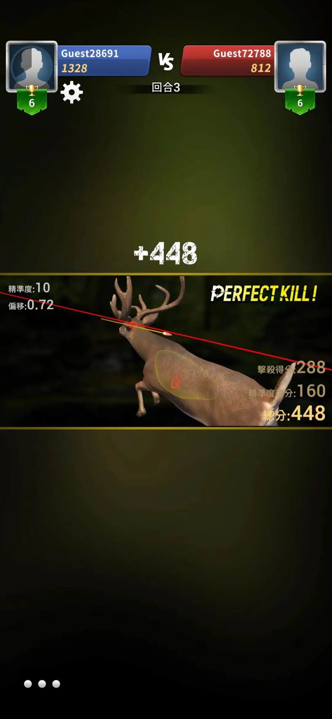 比赛的得分点在于击杀的精准度。猎物有心脏和大脑两处要害,玩家的子弹距离这两个部位越近,得分就越高。每回合提供3颗子弹,无法一击即中则需要补枪。游戏还引入了弹道还原机制,复盘并展示玩家的每一次操作。