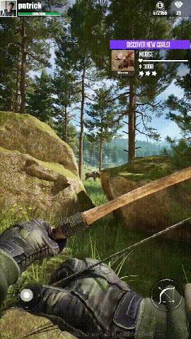 《Hunting Sniper》实际上可看作是披着「打猎」外皮的射击游戏,经典的开镜瞄准狙击二连以及武器、弹药升级等传统要素都包含在内。为了吸引泛用户,游戏将操作大幅简化,玩家以固定的第一人称视角,点击屏幕移动镜头瞄准猎物,松开即可完成射杀动作。同时,其采用1v1对战模式,并设置了不同等级的巡回赛(出现的猎物数量、击杀难度会随着等级递进),进一步激发玩家的挑战欲。