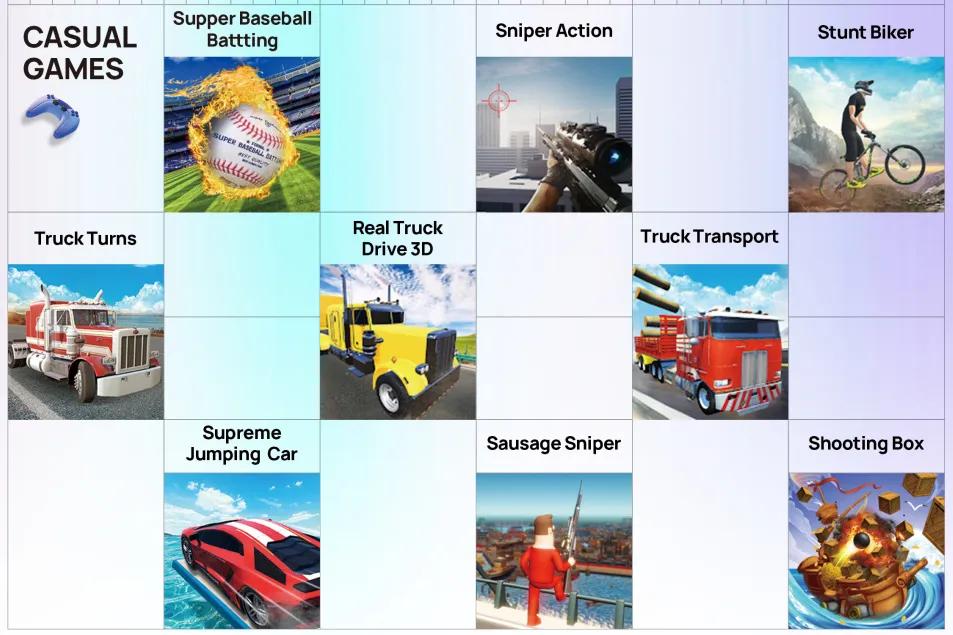 等到以iPhone为首的触屏智能手机兴起,团队转型做起了智能手游,前期专注于卡牌、RPG、SLG等中重度品类,后来又开拓了轻度品类如休闲射击、竞速、消除、街机放置,并将不少产品成功带到海外。