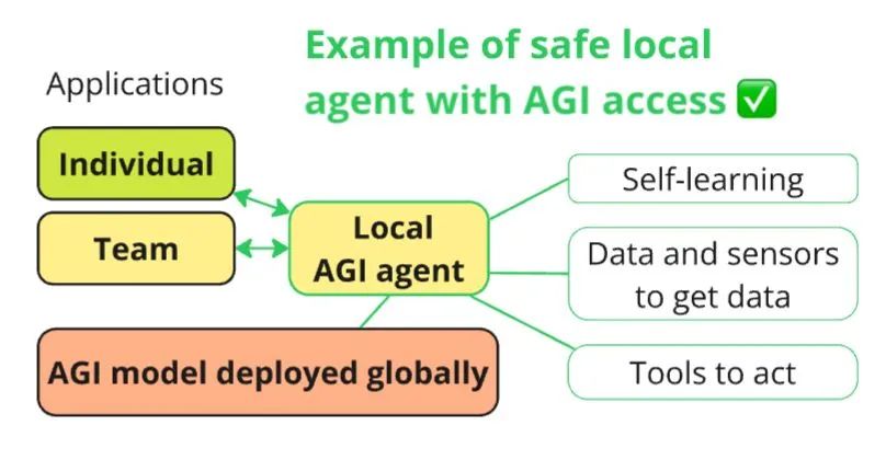 这些系统应该仅作为处理器与“全局”通用人工智能交互。然而,它们只能访问其组织、团队或个人范围内的数据——而且,至关重要的是,它们的行动也必须严格限制在该范围内。