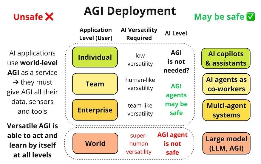 下图说明了在团队和企业级别安全部署 AGI 的模型。