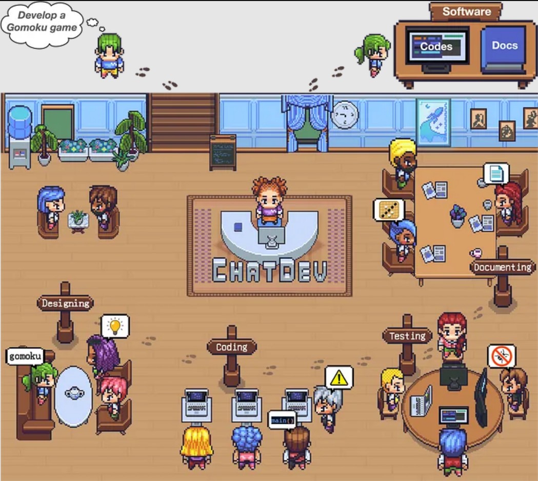 随着智能框架的发展,企业开始构建多智能体系统,寻求通用解决方案。两年前研究者开发了ChatDev协作系统,这个虚拟软件公司通过CEO、产品总监、设计师、程序员等多角色智能体协同工作,成功开发出电子游戏。