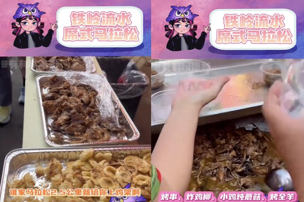 这几年,“流水席式补给”早已把马拉松打卡范围从地标景点、城市面貌扩展到了特色美食。热情似火的东北地区尤其是个中翘楚,锅包肉、烤全羊、小鸡炖蘑菇,乃至东北大板,42公里还没跑累先吃累了。
