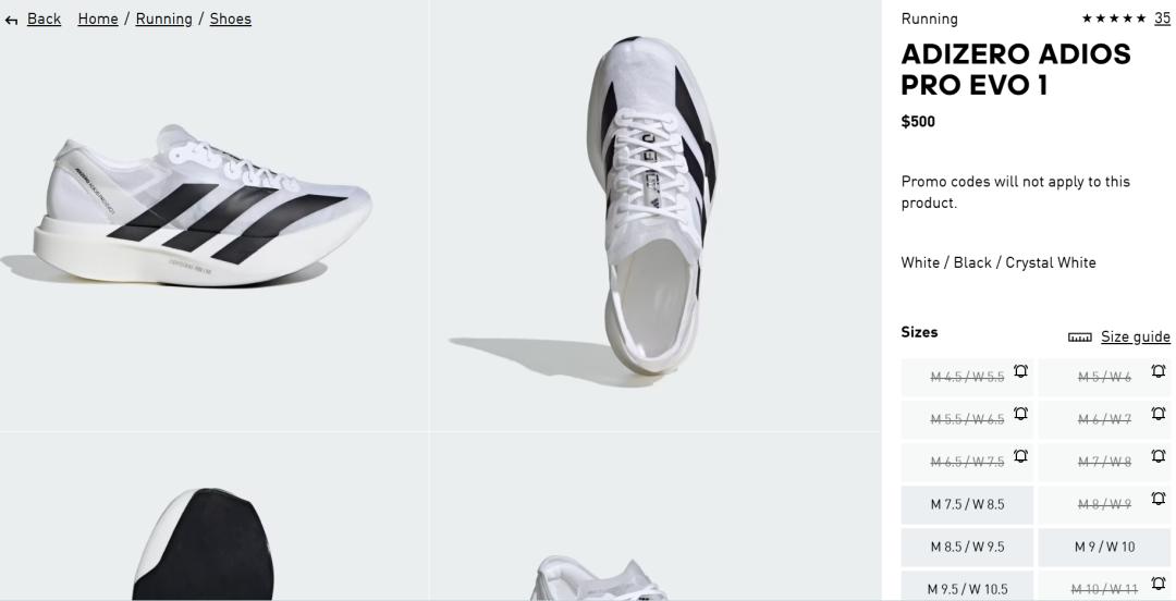 阿迪达斯从2010年开始连续赞助北京马拉松,其首席执行官Bjørn Gulden透露,他们在北京马拉松赛上限量发售200双的新款跑鞋Adizero Adios Pro Evo 1,每双售价500美元(约合人民币3608.8元),一小时内全部售罄。