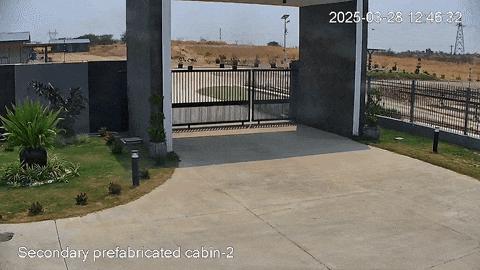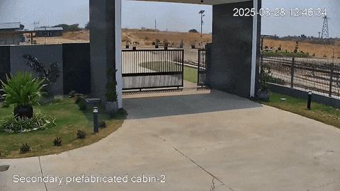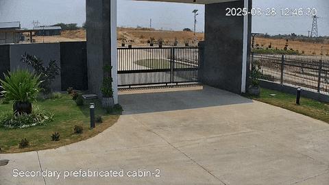 画面中,一切都像是精心设计的电影特效,既真实又显得有些诡异:坚固的大门左右晃动,平整的水泥地面上蔓延开一道道裂缝。突然,围栏右侧的地面像是被一双无形巨手猛地拉动,迅速侧滑了足足两米多远!不远处的输电塔也随即轰然倒塌。
