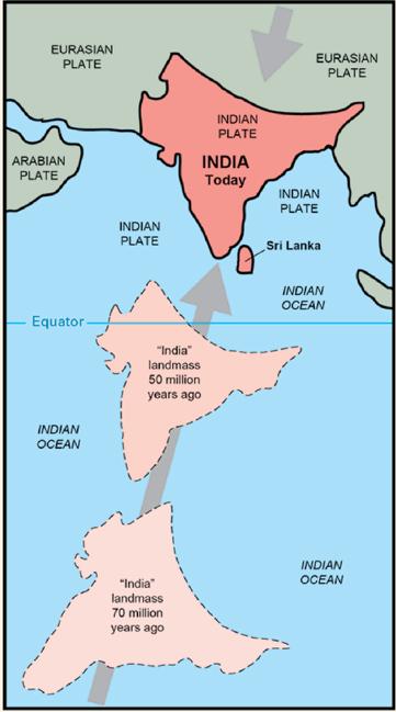 大约在四千万年前,原本在南半球的印度板块,一路向东北漂移,最终与体型庞大的欧亚板块迎头相撞。这场惊天动地的“大车祸”,威力之大,直接将两大板块接触的边缘地带生生“拱”了起来,形成了我们今天看到的巍峨的喜马拉雅山脉。