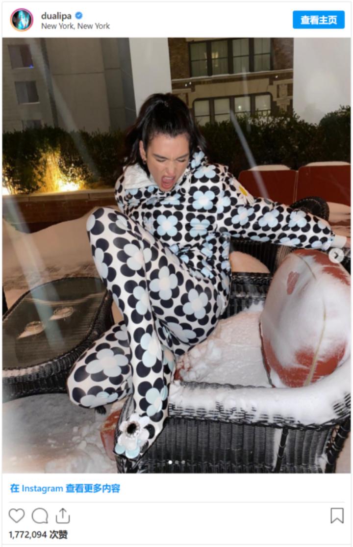 2020年12月,英国新生代流行歌手Dua Lipa因穿着一件来自Richard Quinn与Moncler Genius合作款的花哨leggings,搭配相配的图案羽绒夹克引发关注。她也是热爱穿着紧身裤参加各类演出活动的明星之一。
