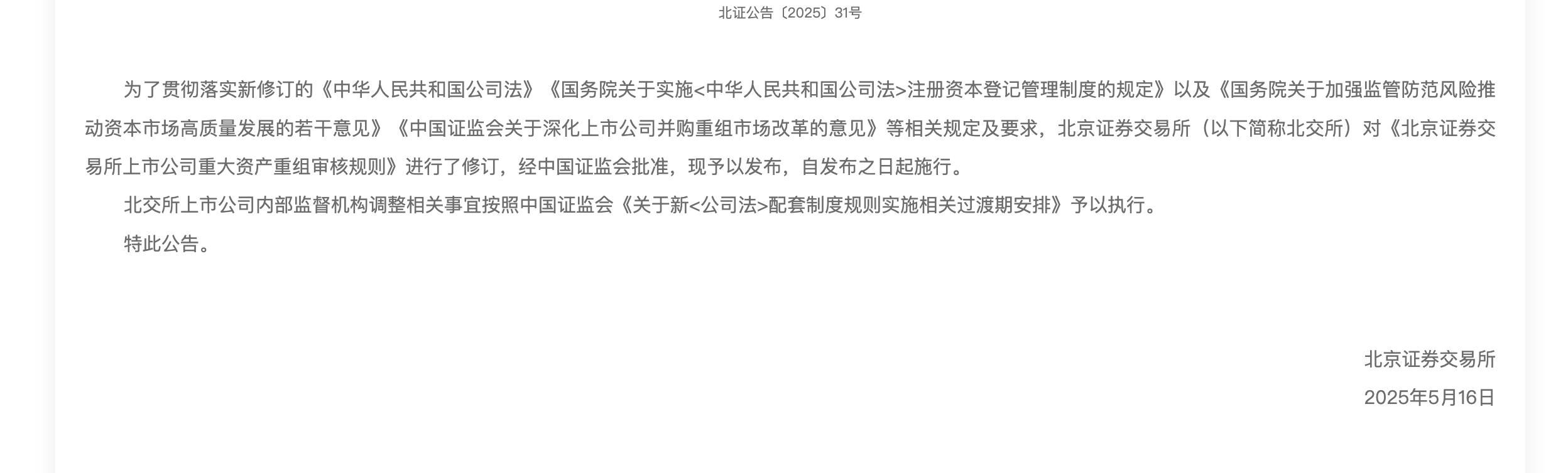 沪深北交易所修订重组审核规则