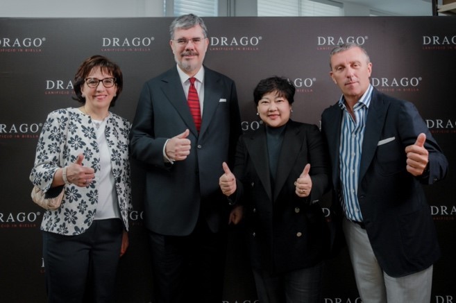 源自意大利比耶拉地区的纺织企业DRAGO迪拉戈,近日正式宣布以合资公司形式进入中国市场,并于意大利大使馆及公司北京总部举办一系列开幕活动。意大利驻华大使H.E.Dr.Massimo Ambrosetti先生、世界裁缝大师Gaetano Aloisio先生、DRAGO集团总裁Paolo Drago先生、DRAGO中国区总经理Sarah Zhang女士等重要嘉宾出席,著名主持人杨澜女士亦惊喜现身,共同见证DRAGO在中国的全新商业版图启幕。