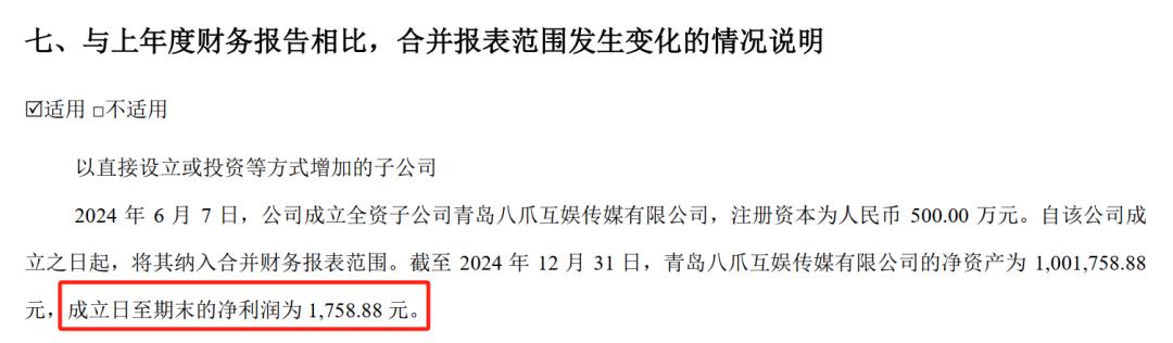 2024 年 6 月,海看成立全资子公司八爪互娱(注册资本 500 万),专门做微短剧。然而到年底时净利润仅千余元,可见其微短剧业务仍处起步阶段。