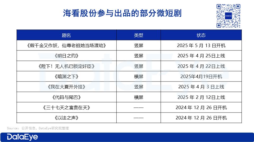 但与此同时,挑战也不容忽视:一方面,2025年微短剧市场竞争日趋激烈,字节、点众、麦芽等头部玩家已形成成熟的内容 - 流量 - 变现闭环,海看作为后来者在移动端缺乏竞争力;另一方面,微短剧行业依赖投流、用户运营、数据分析等互联网能力,传统广电系在编剧、运营人才储备上存在明显短板。
