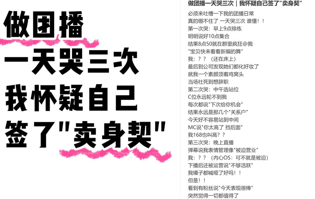 这也导致团播内部为争夺出镜机会和 C 位曝光度,斗争不断。
