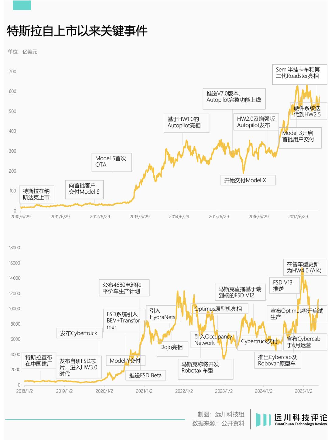 当时特斯拉市值“只有”250亿美元,而苹果刚成为首家市值突破7000亿美元的科技公司。十年后,特斯拉市值超过1万亿美元,而且是跌下来的。