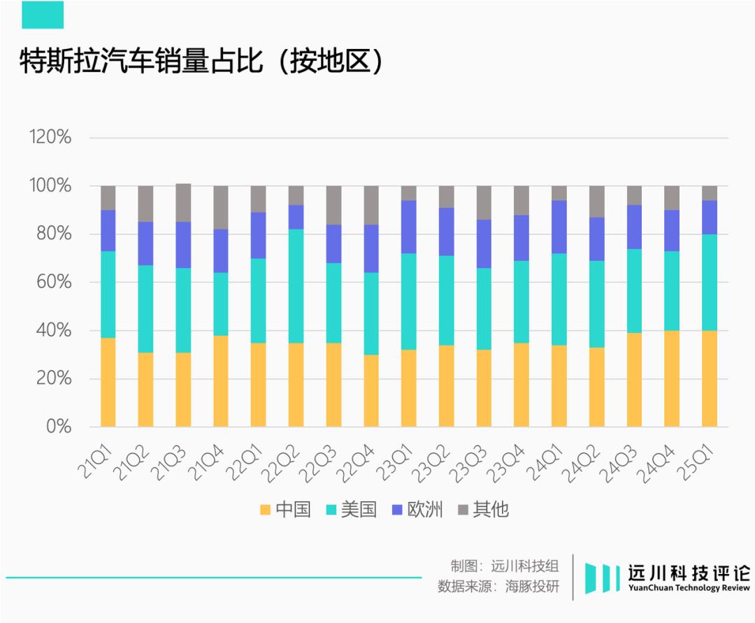 同时,特斯拉对中国市场的依赖也在加深。2024年,中国是特斯拉销量唯一正增长的市场,但其份额从2021年一季度15.8%降至今年同期5.6%[6]。作为对比,比亚迪的市占率连续三年超过3成,独孤求败。
