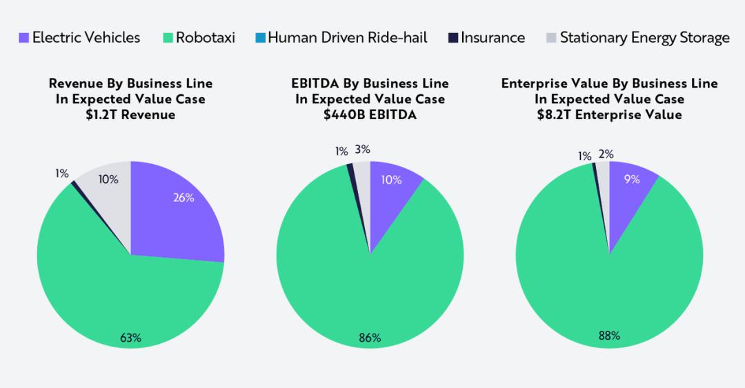 方舟基金预测,2029年特斯拉近九成企业价值和收益将来自Robotaxi
