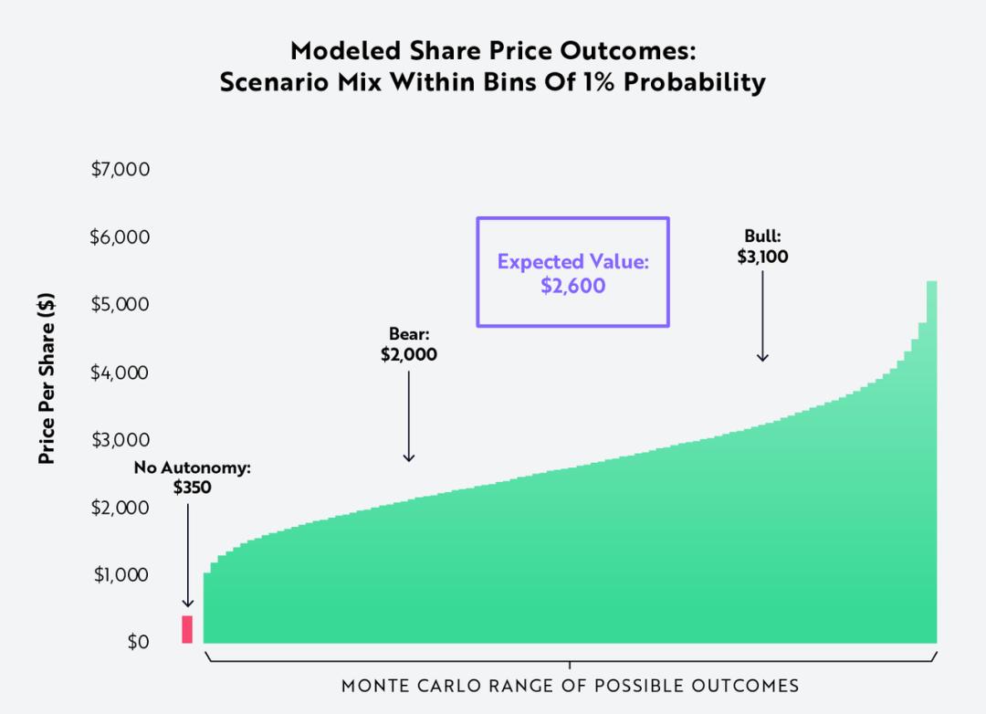 作为马斯克的头号脑残粉,木头姐虽然在新报告中继续唱多特斯拉,给出了2600美元的目标价,但也罕见加入“防杠声明”:若没有自动驾驶,特斯拉目标价将缩水到350美元。