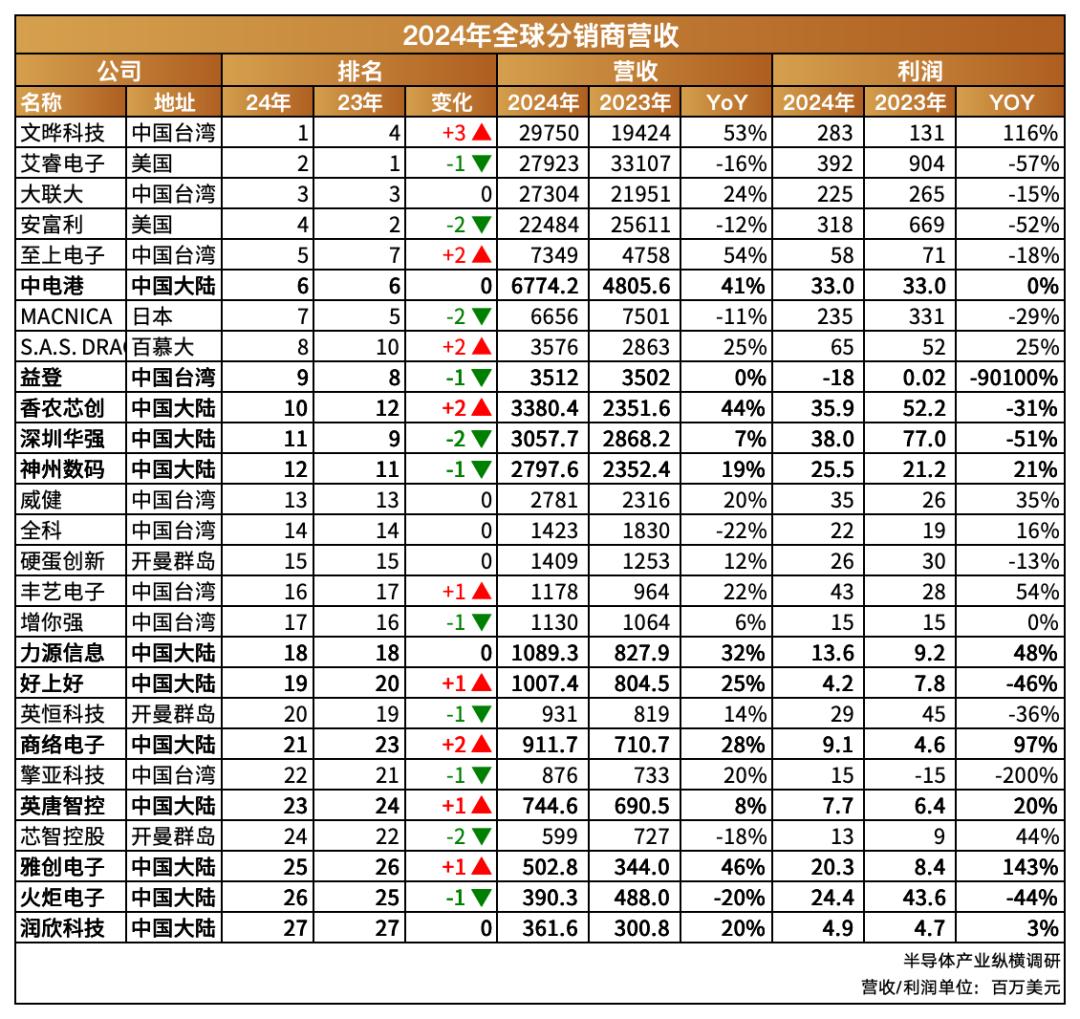 电子元器件分销商的2024:谁狂飙?谁神伤?