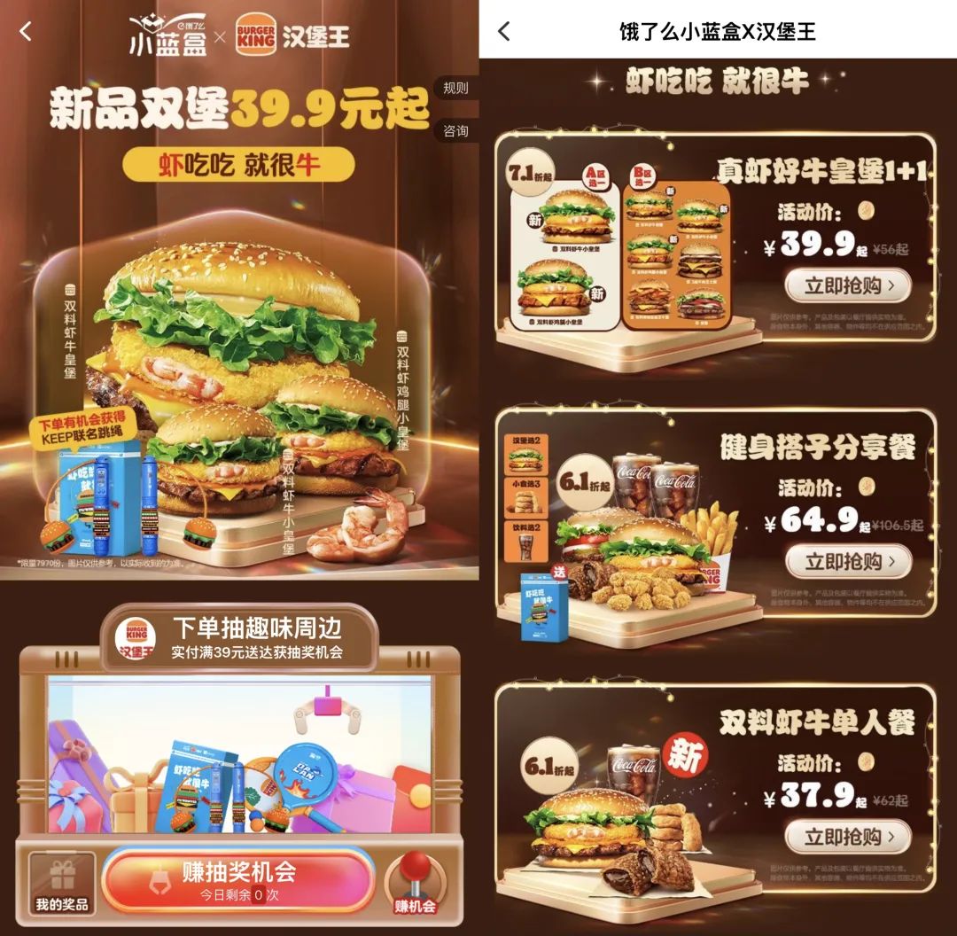 开屏广告、首页弹窗、banner广告等这些高曝光入口,正强势触达用户;特别是下拉页面后出现的"二楼"专属活动区,已成为连锁品牌新品推广和周年庆营销的主战场。比如近期打开饿了么在首页下拉后就会看到汉堡王出现在“大牌惊喜”专区,推广“新品双堡39.9元起”活动,用户下单后还可以在活动页抽取周边小礼品。