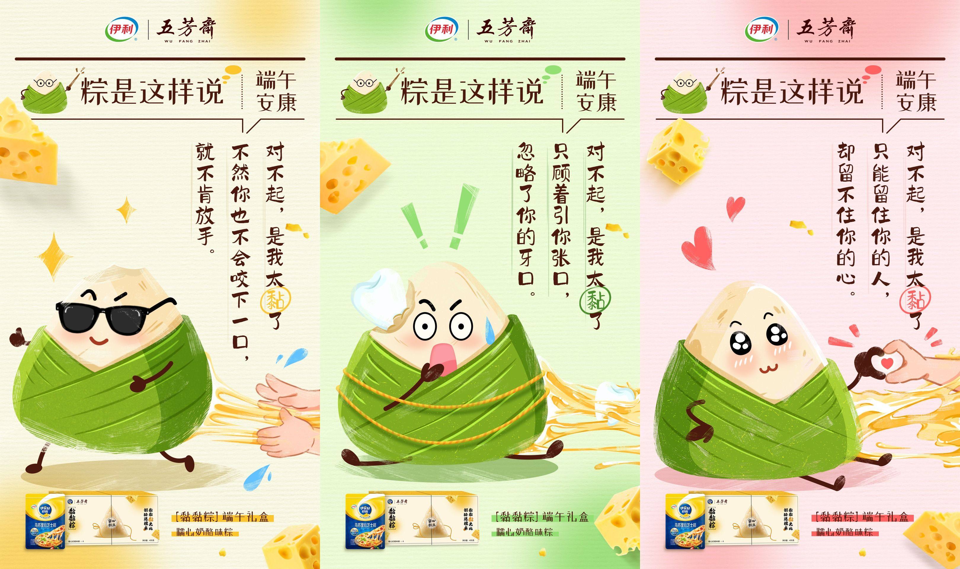 一颗粽子、一块奶酪,看似毫无关联的食物,却因"黏"而结缘。伊家好奶酪与五芳斋本次的联名看似意外,实则是基于对消费者生活场景和情感需求的深度洞察:无论是吃完粽子后指尖残留的糯米黏腻,还是享用奶酪时芝士"缠上"牙齿的甜蜜烦恼,"黏"既是食物的物理特性,也被赋予更生动的情感表达——它可以是甩不掉的亲友、黏人的宠物,或是总在加班时"黏"住你的工作待办事项。品牌通过提炼这一跨文化、跨品类的共同符号,以创意碰撞打破传统节令食品的固有印象,让端午美食更贴近年轻人的生活语境,撬动当代年轻人的情感共振。