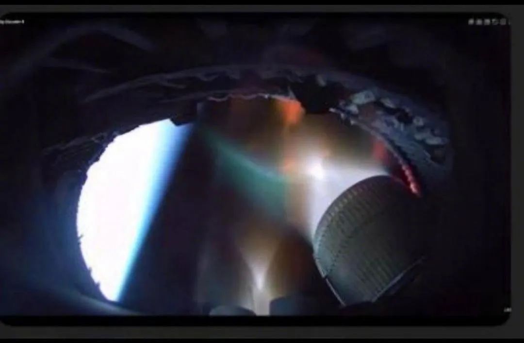 直播画面中,姿态失控的星舰S25撞入地球大气层的场景 | SpaceX