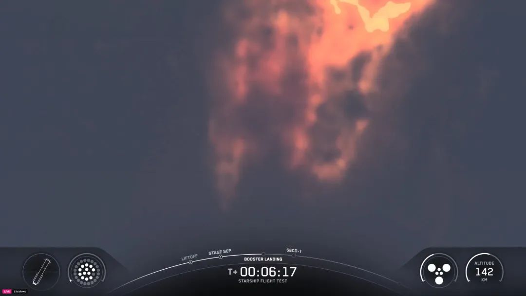 这次发射的一级火箭“超重型助推器”,编号B14,本身就是个“老兵”。它正是今年1月星舰第七次试飞中,那枚成功回收的一级 。SpaceX这次大胆地让它“重操旧业”,进行了首次重复使用发射。