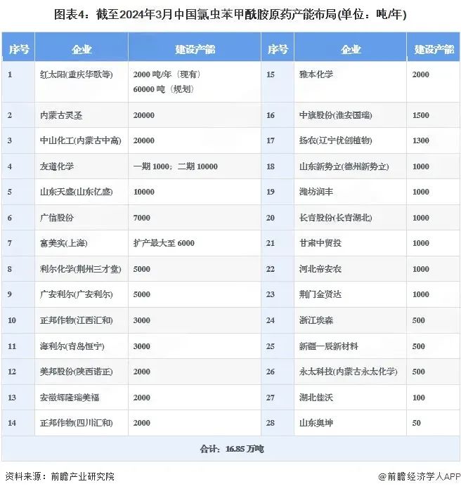 氯虫苯甲酰胺原料产能布局 资料来源:前瞻产业研究院