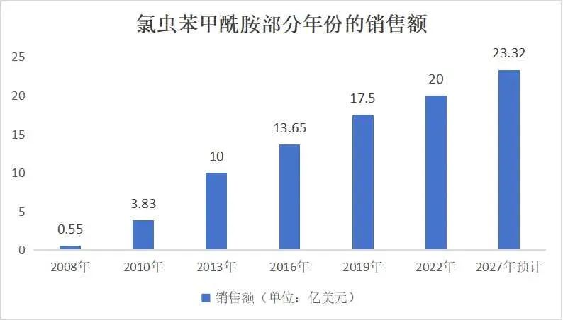 氯虫苯甲酰胺部分年份的销售额
